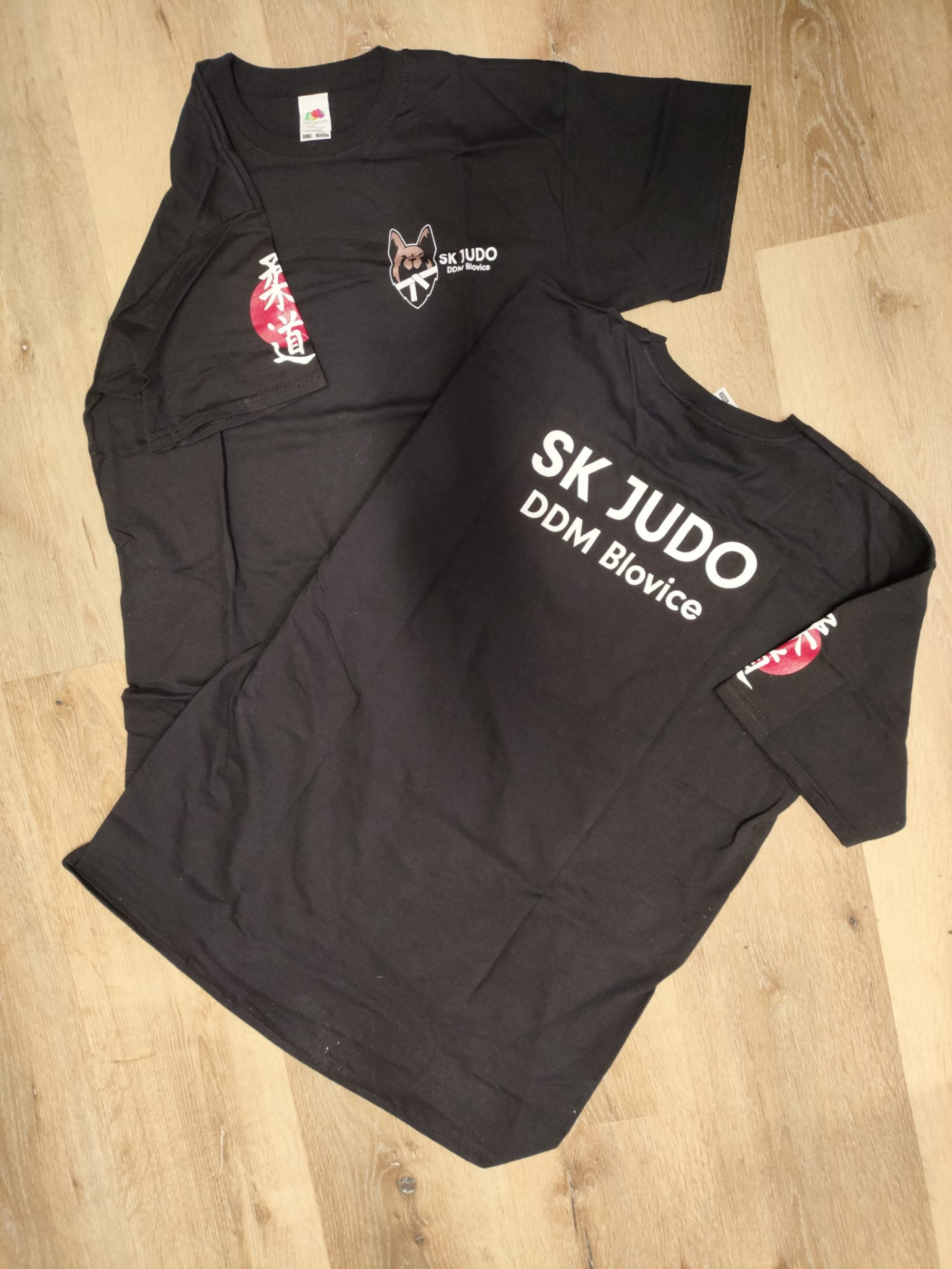 Nabízíme trička s označením SK JUDO DDM Blovice. Označení klubu je na hrudníku vlevo, na pravém rukávku je vyveden znak judo a na zádech název klubu.